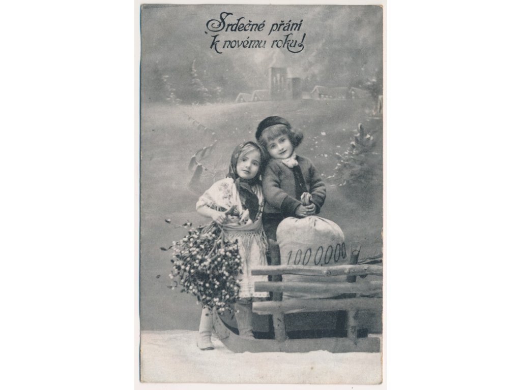 Srdečné přání k Novému roku, děti, jmelí..., 1917