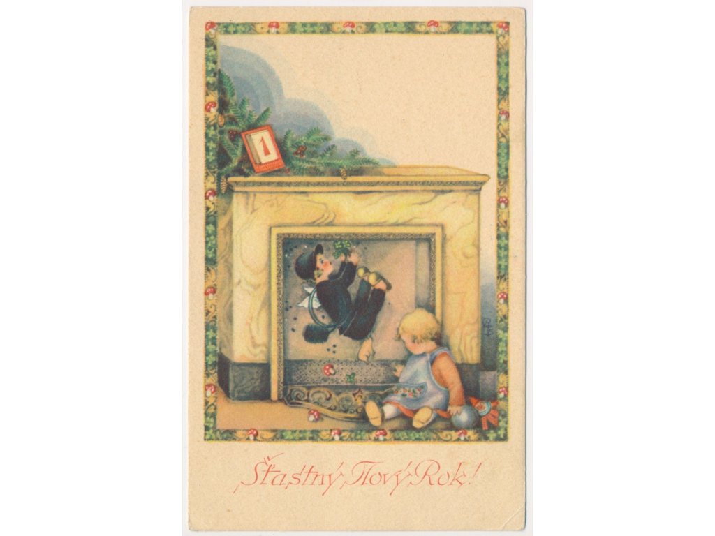 Vánoční secesní přání, Maminka s batoletem, cca 1909
