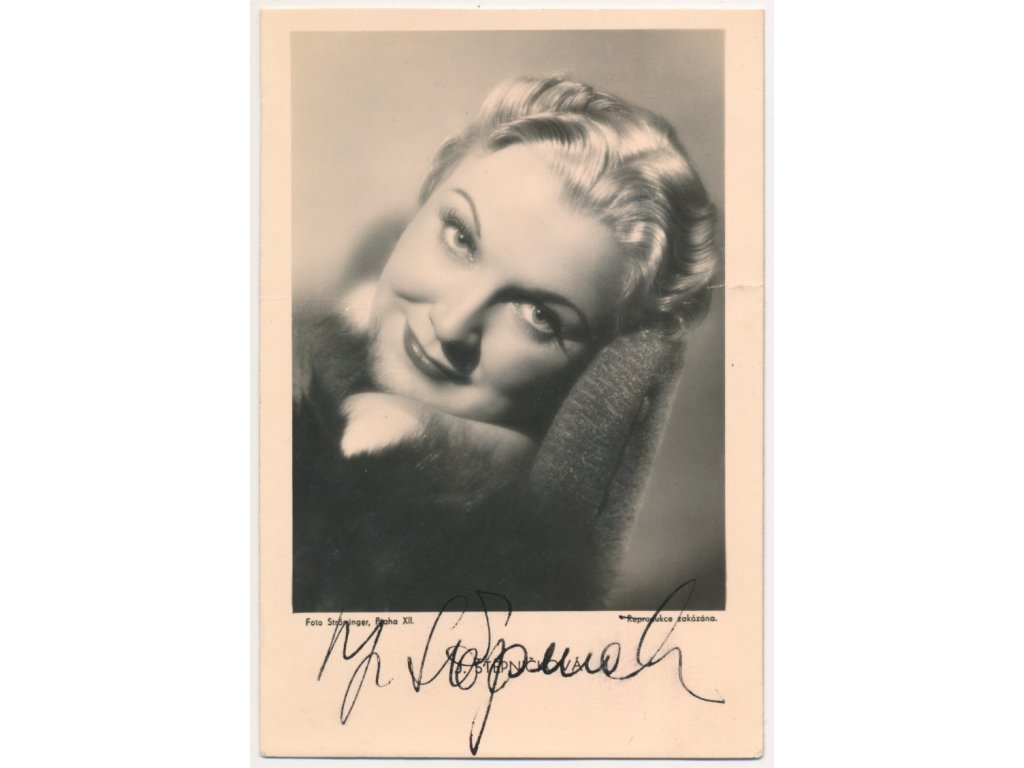 Štěpničková Jiřina (1912-1985), česká divadelní a filmová herečka, portrétová pohlednice (foto Ströminger) o rozměrech cca 9x14cm s vlastnoručním podpisem...viz autentické foto