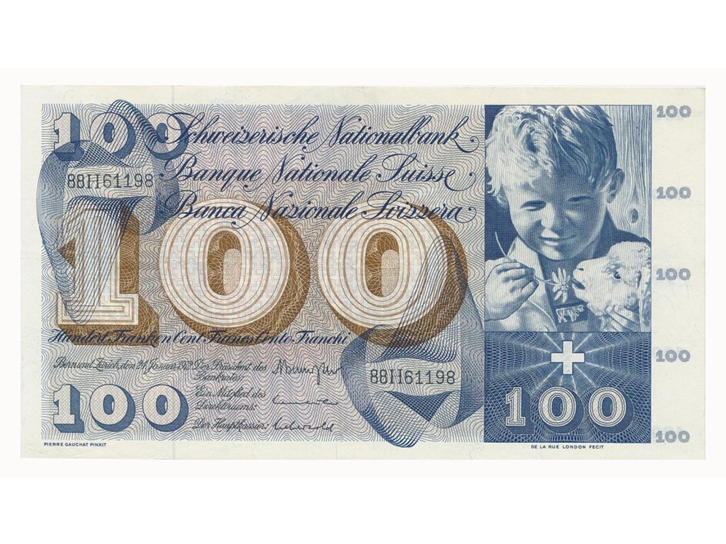 Švýcarsko, 100 Franků, 1972, pěkný stav 1