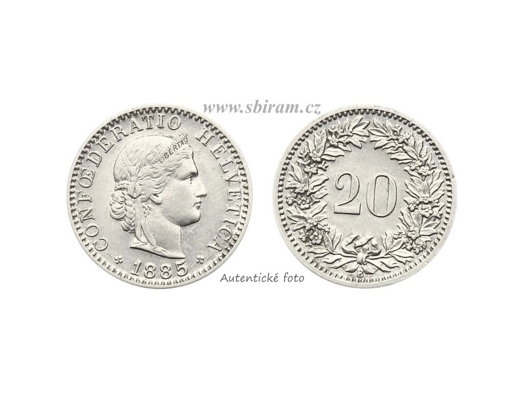 Švýcarsko, mince 20 Rappen, 1885, stav 1/1...viz autentické foto