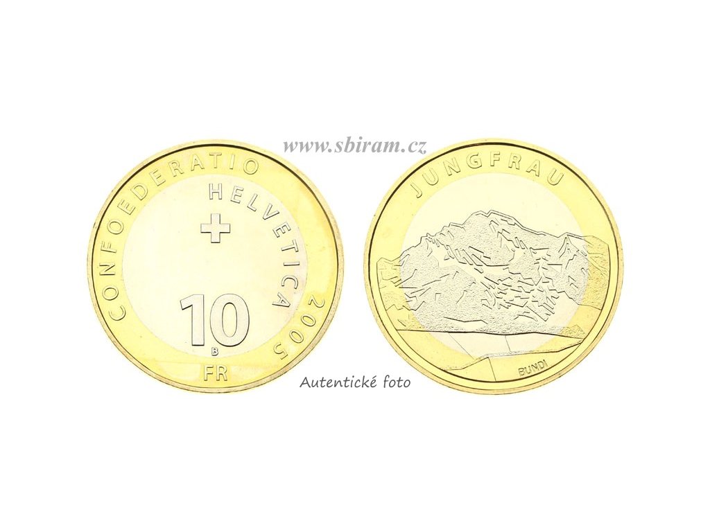 Švýcarsko, pamětní mince 10 Franků, 2005, Hora Jungfrau...viz autentické foto