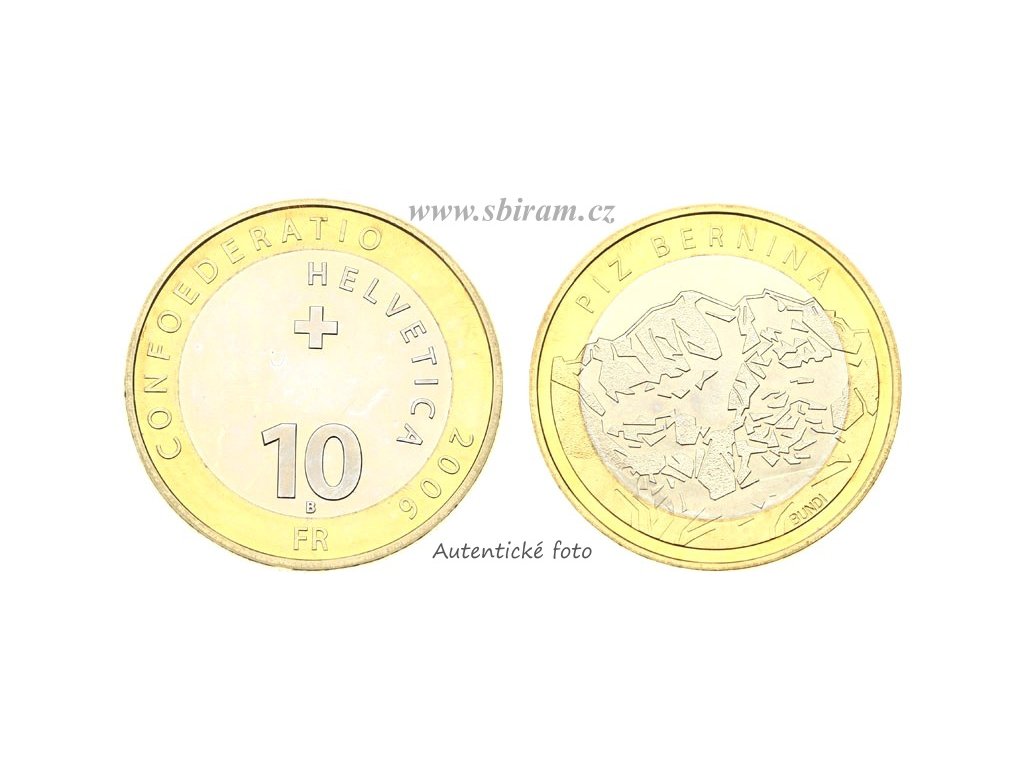 Švýcarsko, pamětní mince 10 Franků, 2006, Hora Piz Bernina...viz autentické foto