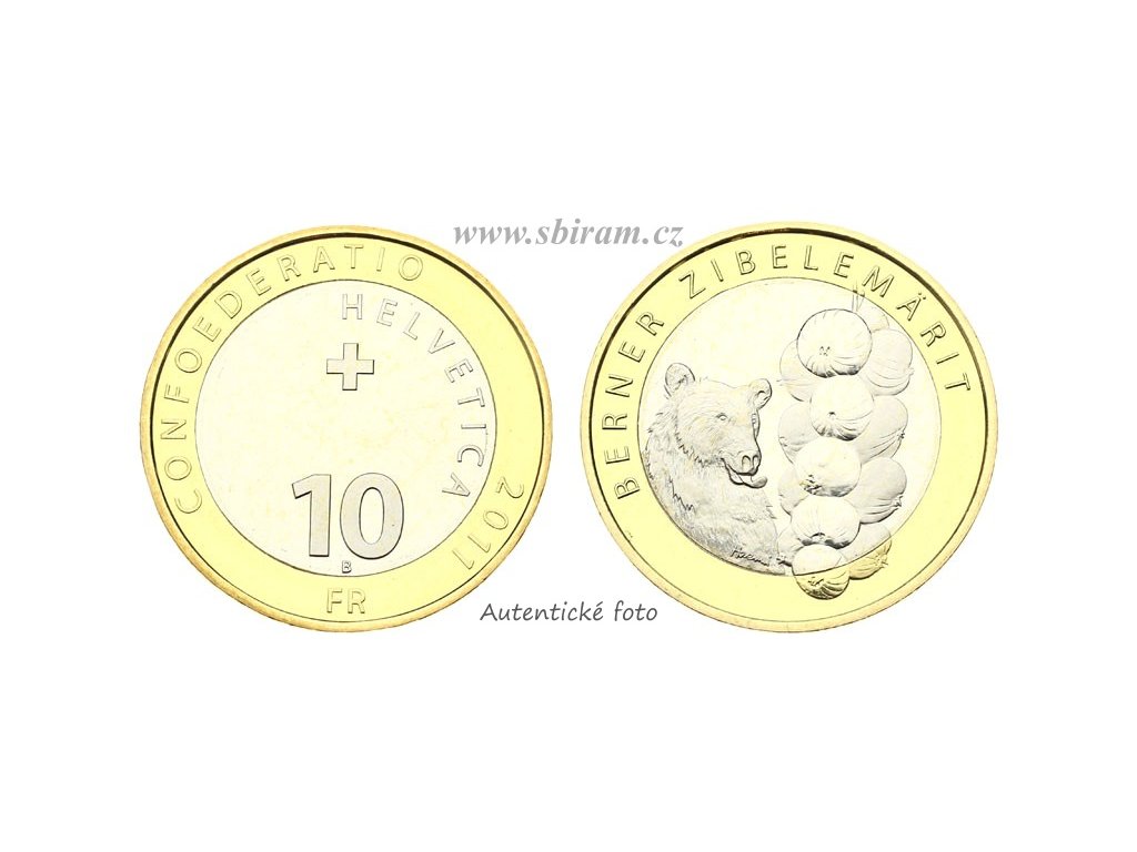 Švýcarsko, pamětní mince 10 Franků, 2011, Bernský cibulový trh...viz autentické foto