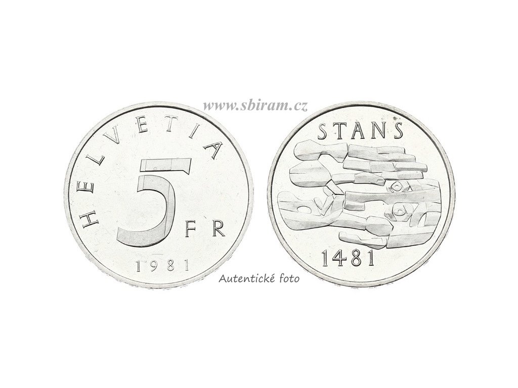 Švýcarsko, pamětní mince 5 Franků, 1981, 500. výročí – Stanská úmluva z roku 1481...viz autentické foto