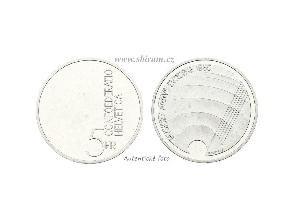 Švýcarsko, pamětní mince 5 Franků, 1985, Evropský rok muziky...viz autentické foto