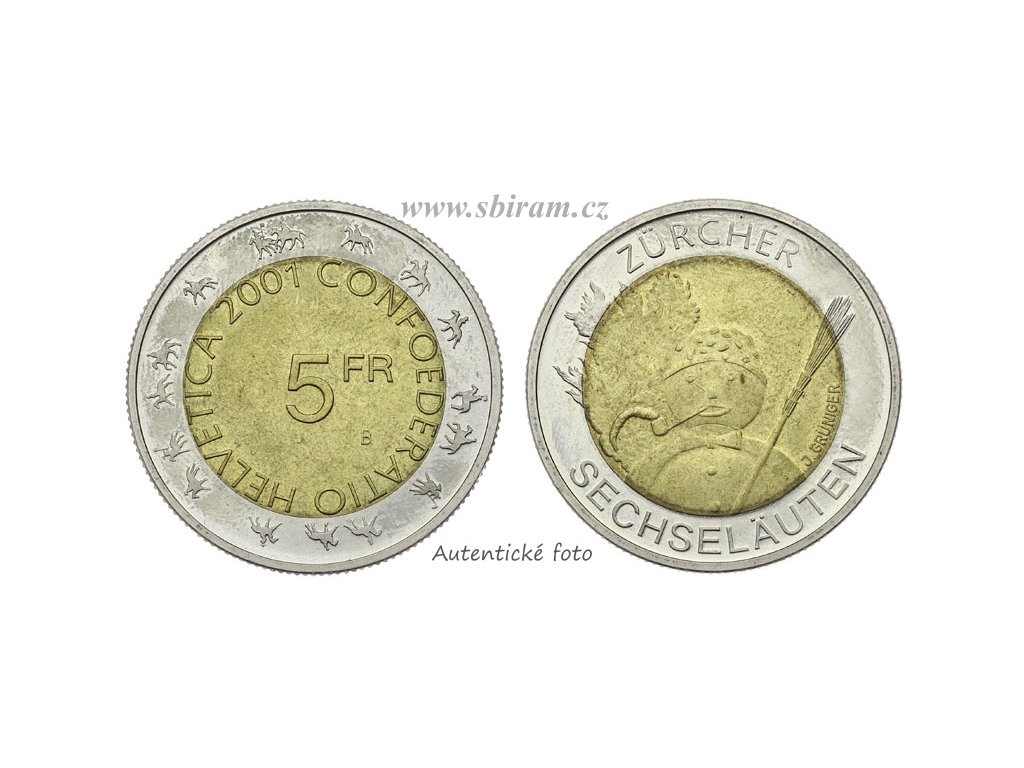 Švýcarsko, pamětní mince 5 Franků, 2001, Zurcher Sechselauten...viz autentické foto