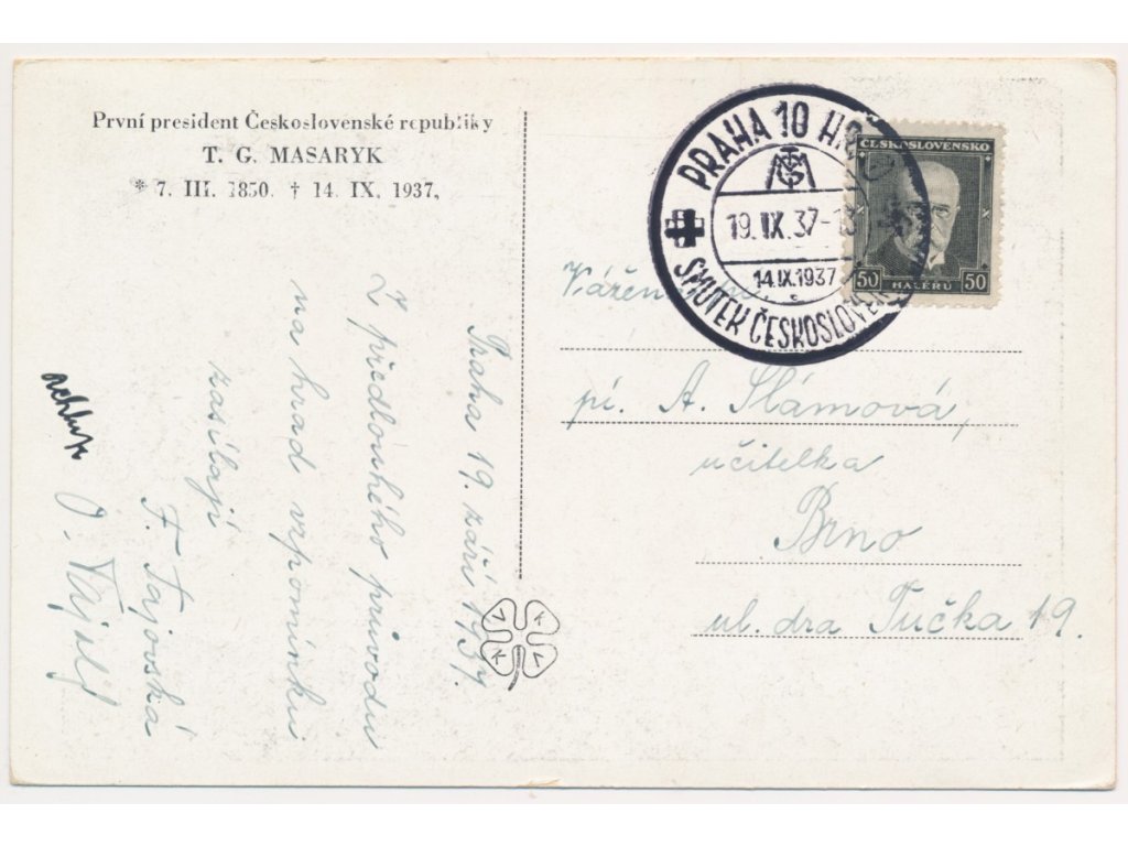 T. G. Masaryk, Portrétová pohlednice s podpisem, cca 1937