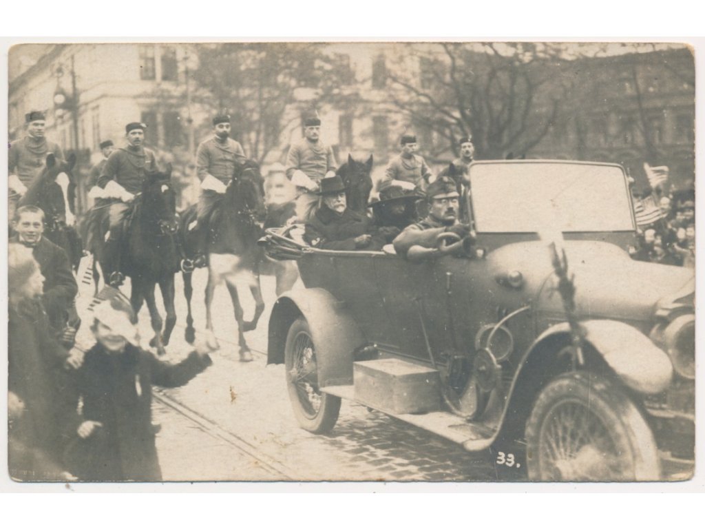 T. G. Masaryk, příjezd prezidenta v automobilu do Prahy, cca 1918