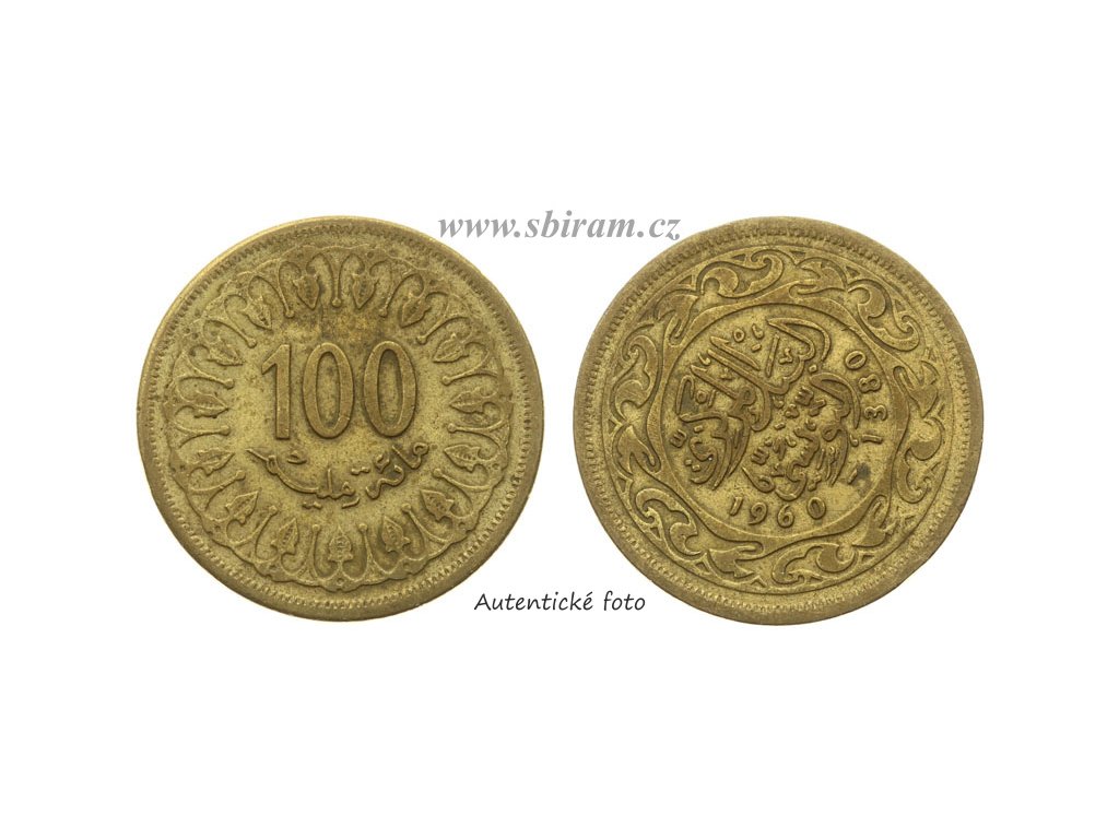 Tunisko, mince 100 Milimů, 1960...viz autentické foto