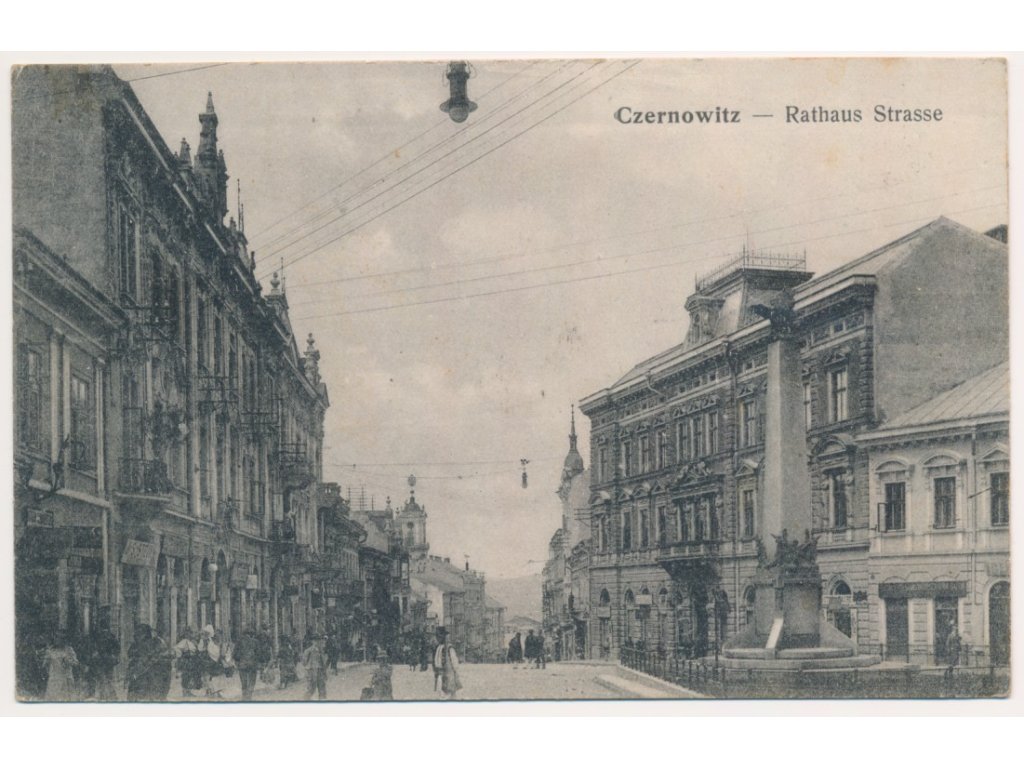 Ukrajina, Czernowitz, Rathaus Strasse, oživená ulice, cca 1915