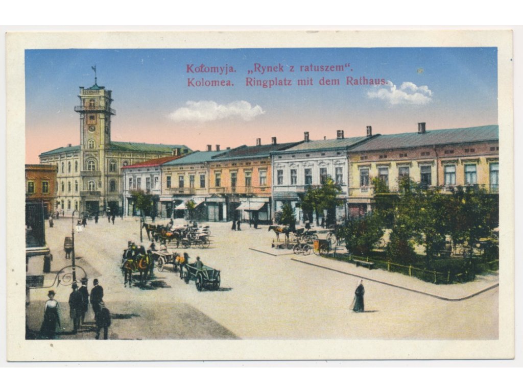 Ukrajina, Kolomyja, Rynek z Ratuszem, oživené náměstí, cca 1916