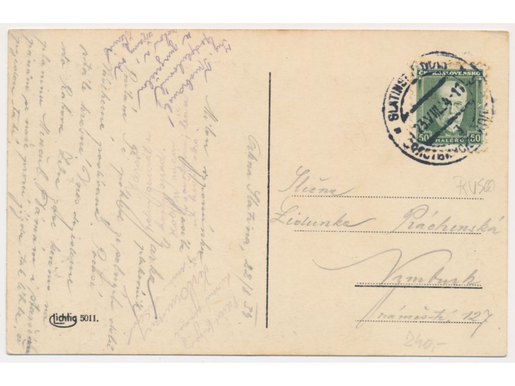 pohlednice prošlá poštou, stav odpovídá použití, uložení a stáří