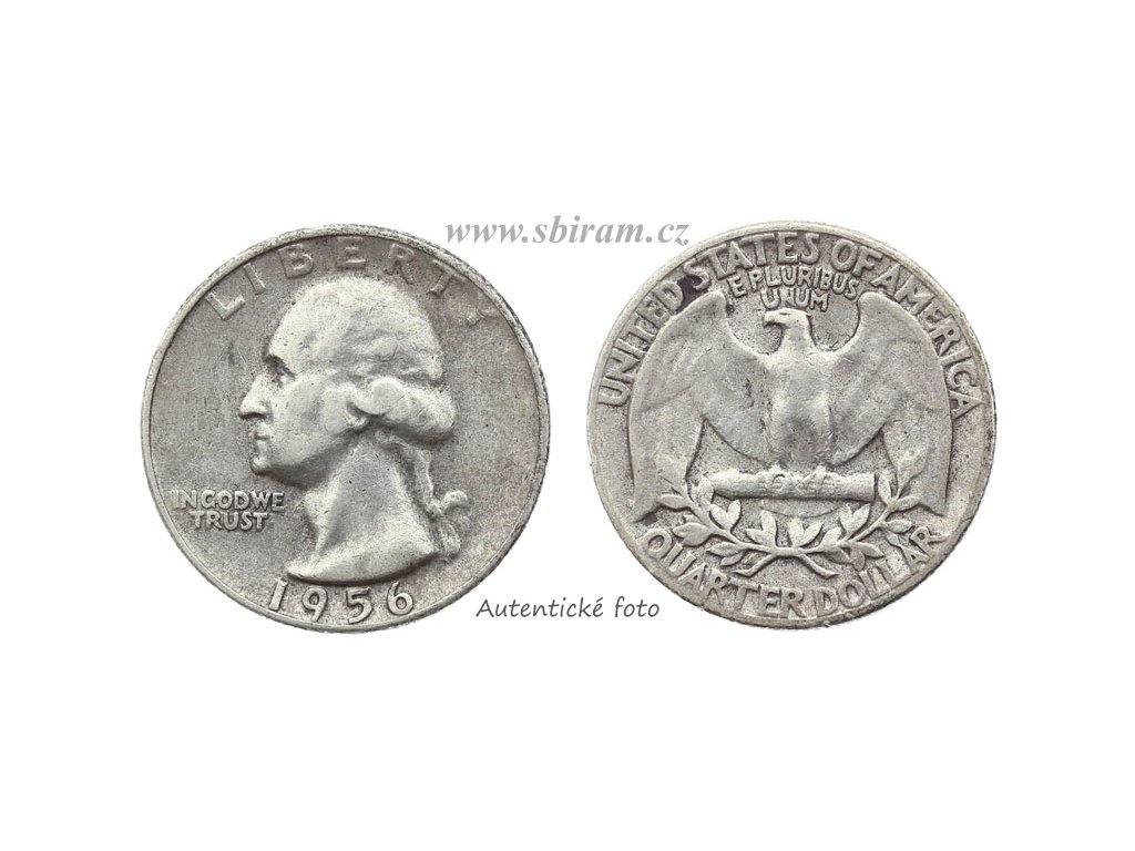 USA, Ag (stříbrná) mince 1/4 Dollar, 1956...viz autentické foto