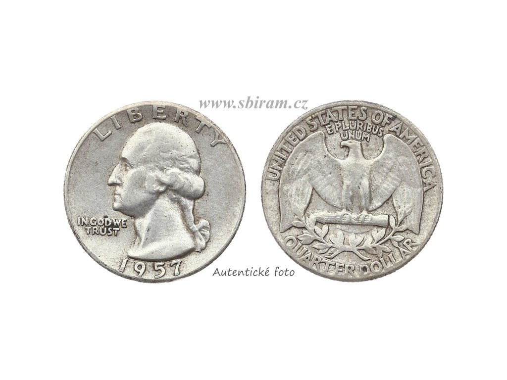 USA, Ag (stříbrná) mince 1/4 Dollar, 1957...viz autentické foto