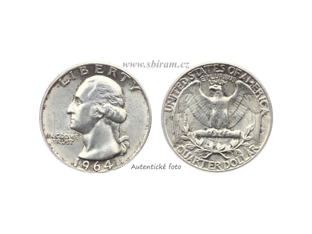 USA, Ag (stříbrná) mince 1/4 Dollar, 1964...viz autentické foto
