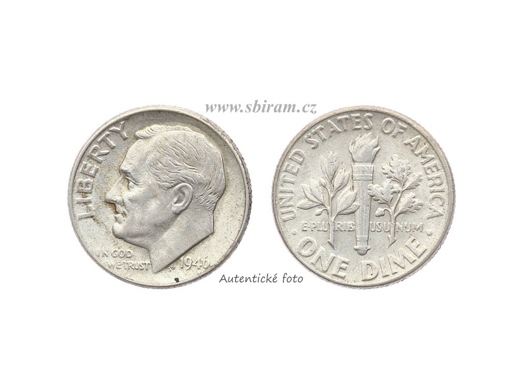 USA, Ag (stříbrná) mince 1 Dime, 1946...viz autentické foto