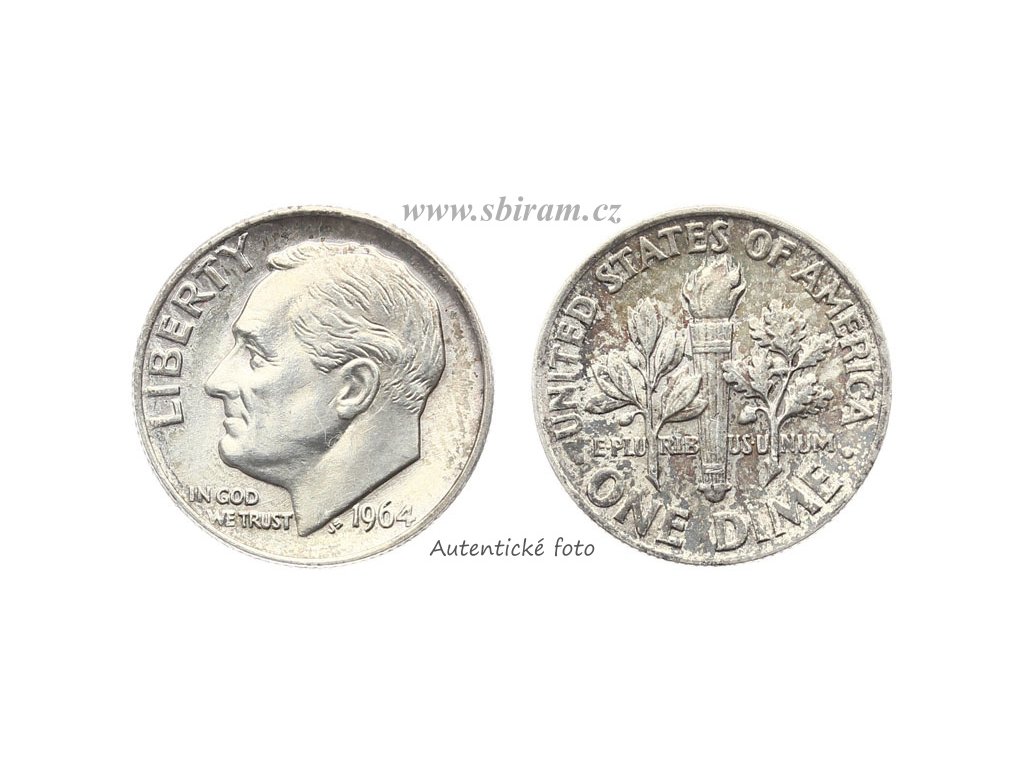 USA, Ag (stříbrná) mince 1 Dime, 1964...viz autentické foto