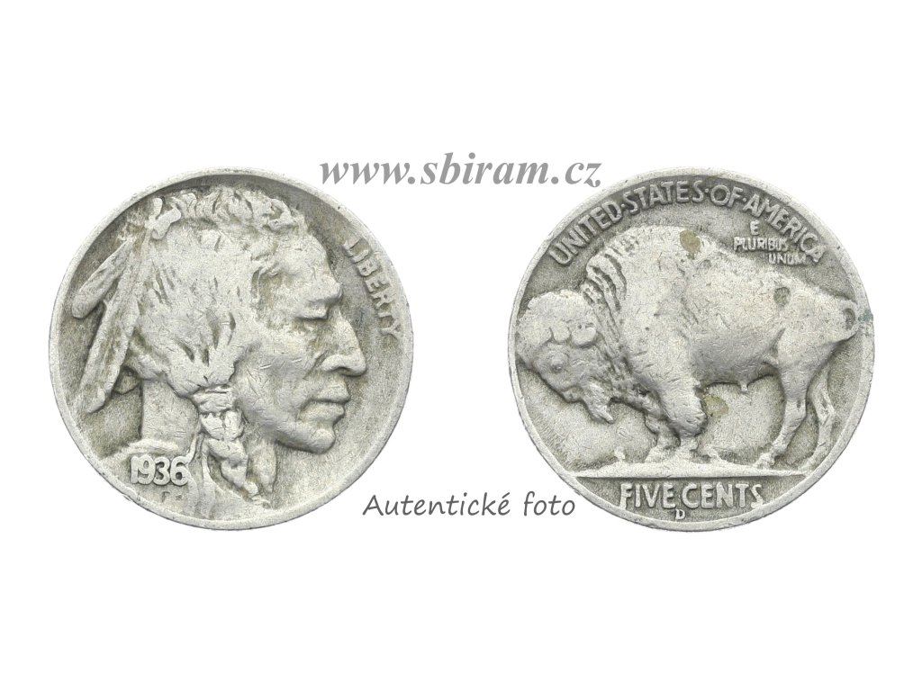 USA, mince 5 Cents, 1936, stav 1/1...viz autentické foto