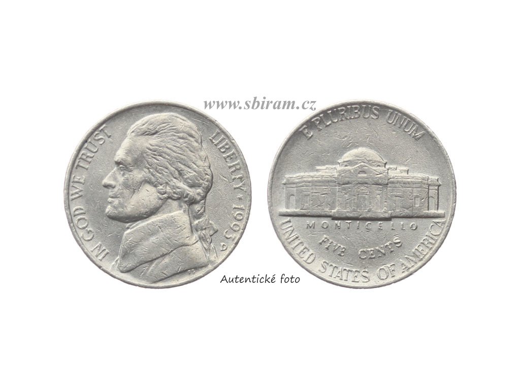 USA, mince 5 Cents, 1993 D...viz autentické foto