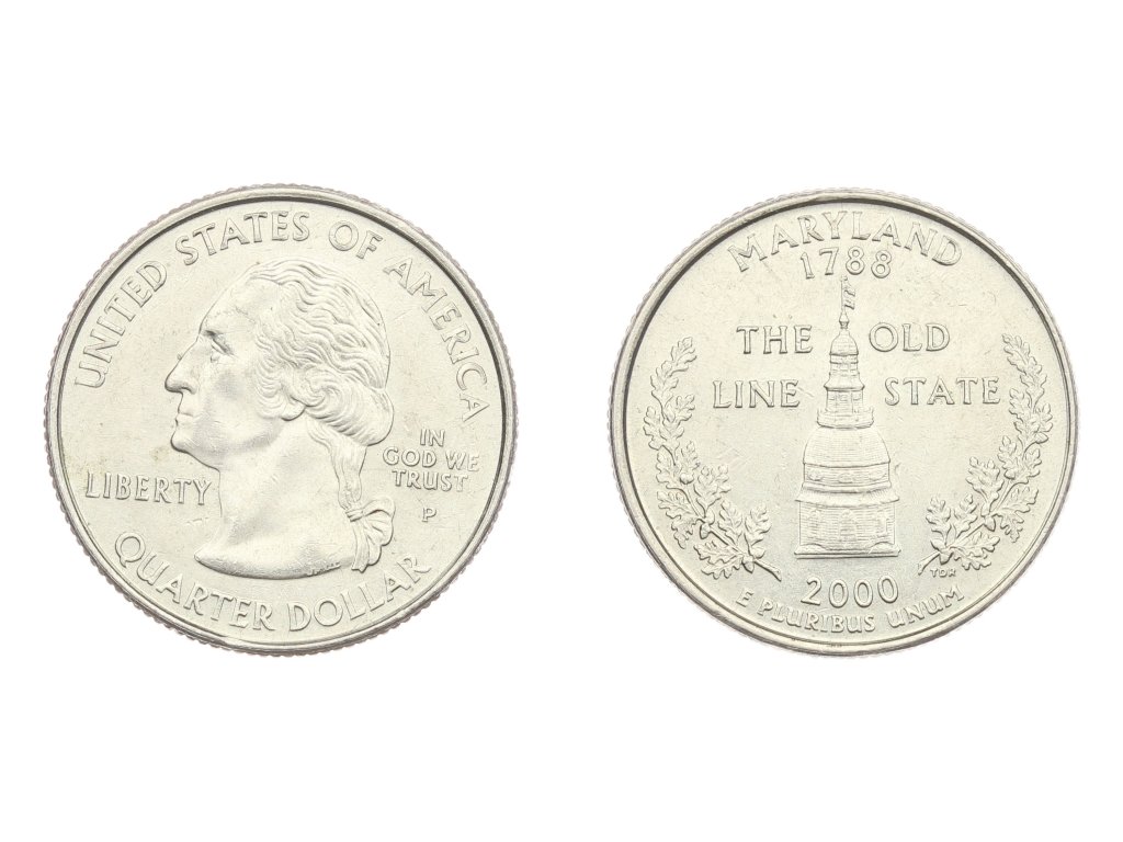 USA, pamětní mince Quarter Dollar, 2000, P, Maryland, stav 1/1...viz autentické foto