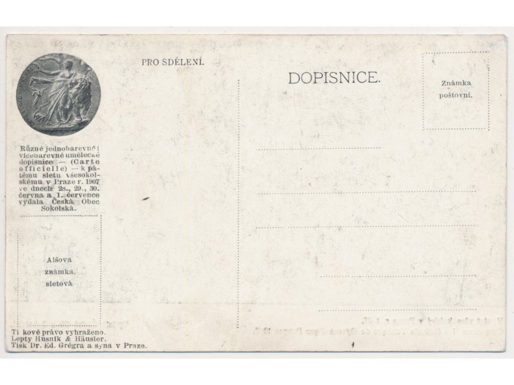V. slet všesokolský, Oficiální pohlednice Českosl. obce sokolské, 1907