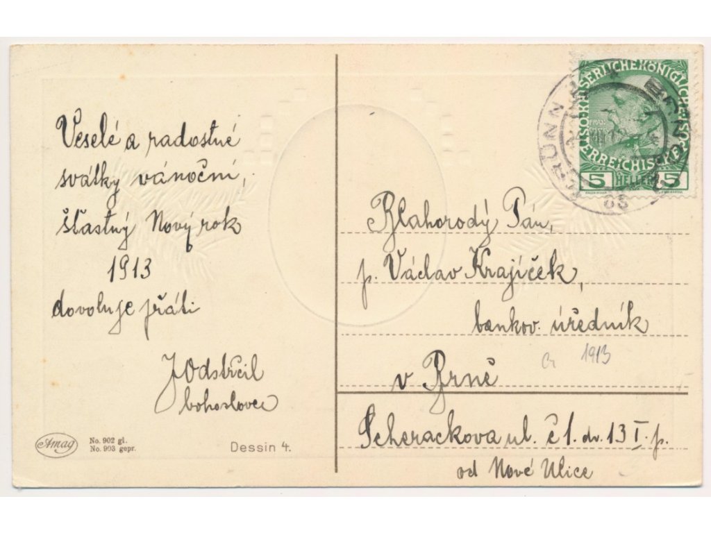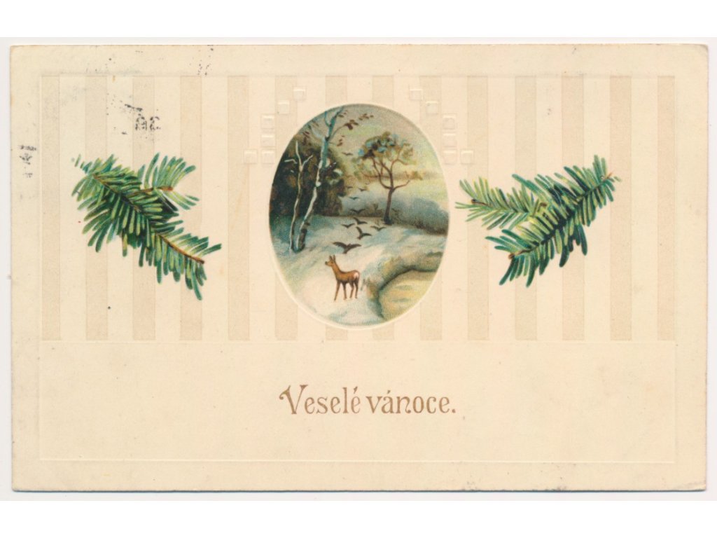 Vánoční námětová koláž, zasněžená krajina, cca 1913