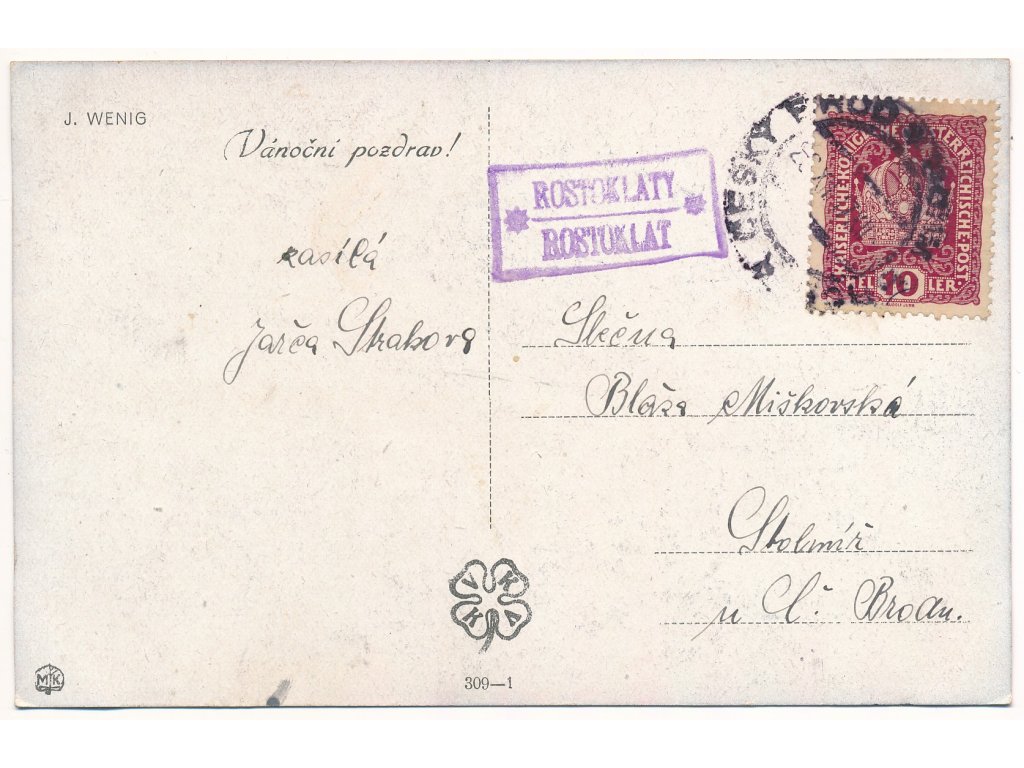 Vánoční pozdrav, Chlapeček hraje na housle, Ježíšek..., J. Wenig, cca 1917