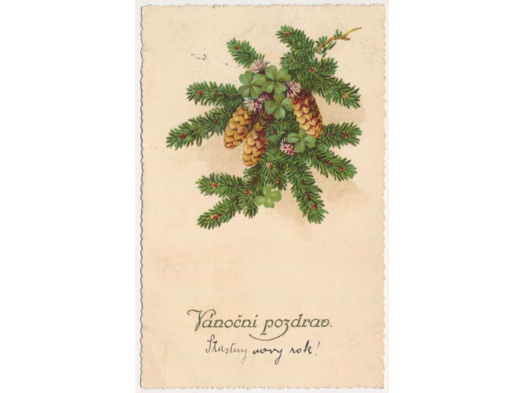 Vánoční pozdrav, Čtyřlístky, šišky..., cca 1924