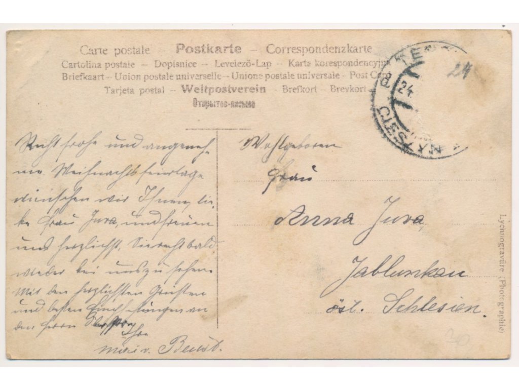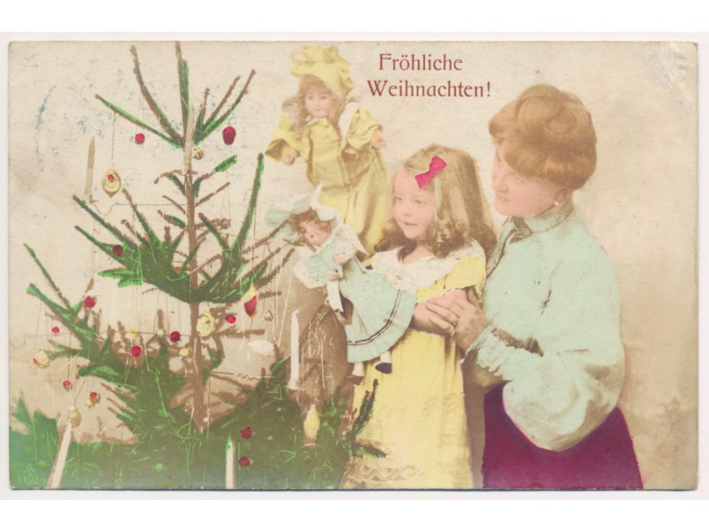 Vánoční přání, Fröhliche Weihnachten!, maminka a dcera u stromečku, cca 1912