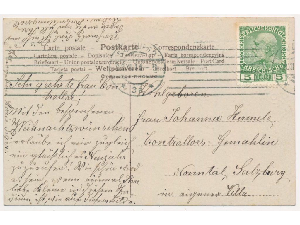 Vánoční přání, Holčička s panenkou u stromečku, cca 1911