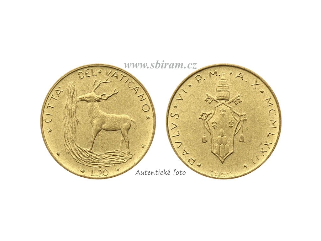 Vatikán, mince 20 Lir, 1972, stav 1/1...viz autentické foto