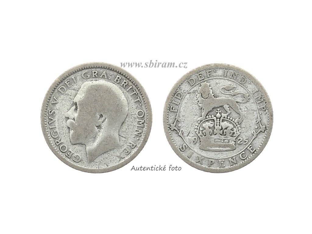 Velká Británie, Ag (stříbrná) mince 6 Pence, 1925...viz autentické foto