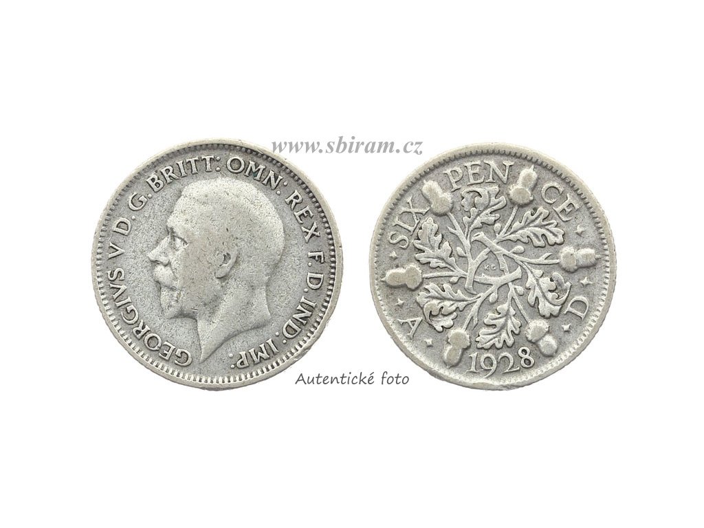 Velká Británie, Ag (stříbrná) mince 6 Pence, 1928...viz autentické foto