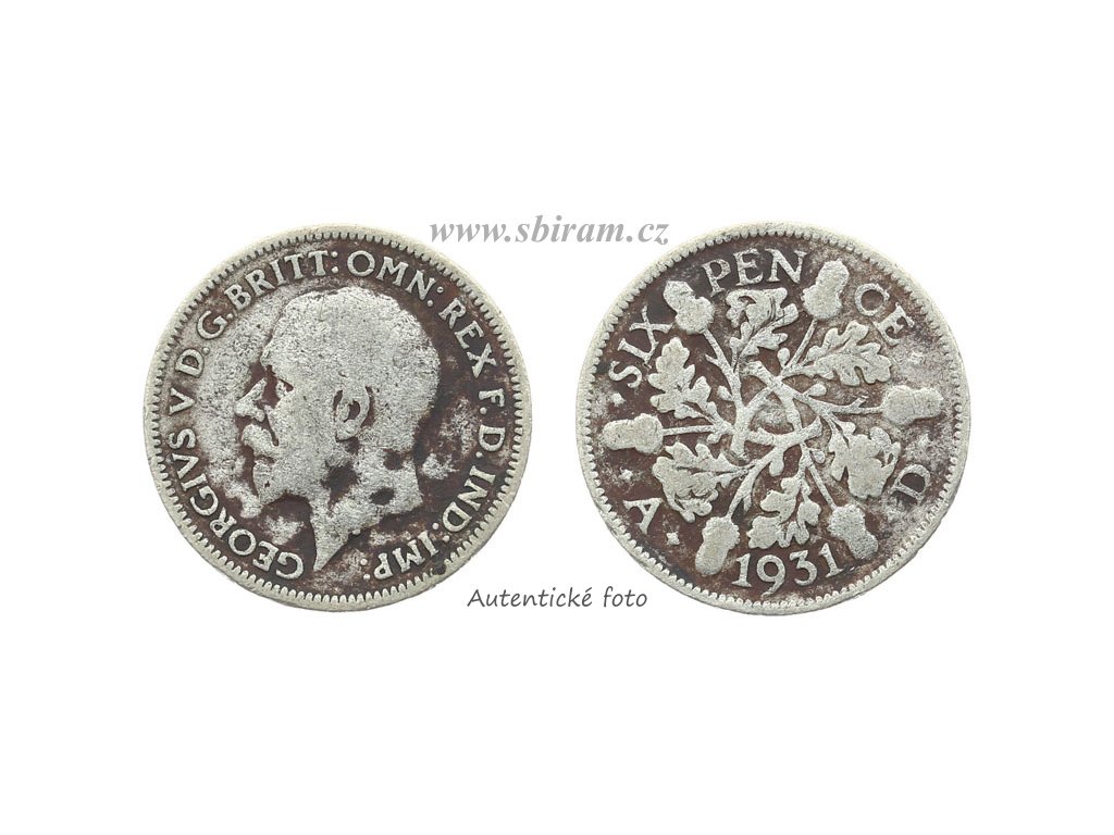 Velká Británie, Ag (stříbrná) mince 6 Pence, 1931...viz autentické foto