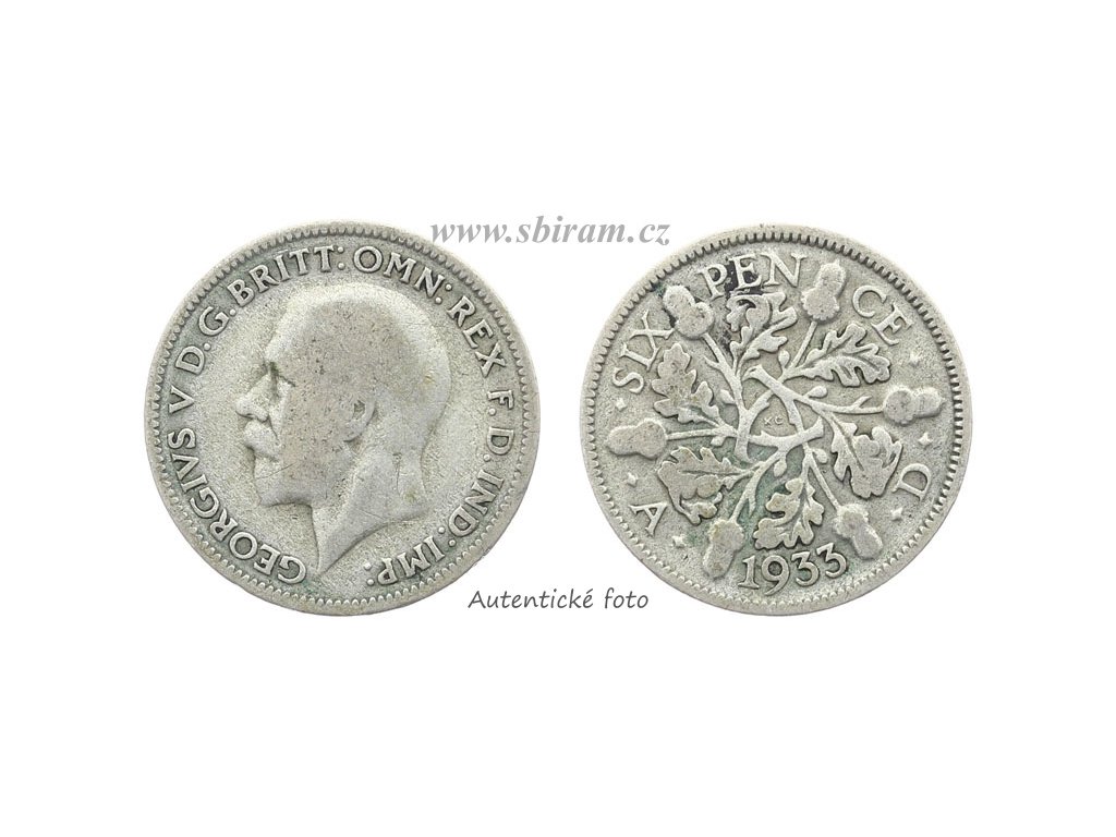 Velká Británie, Ag (stříbrná) mince 6 Pence, 1933...viz autentické foto