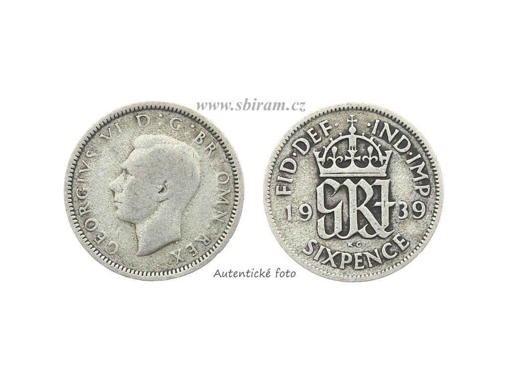 Velká Británie, Ag (stříbrná) mince 6 Pence, 1939...viz autentické foto