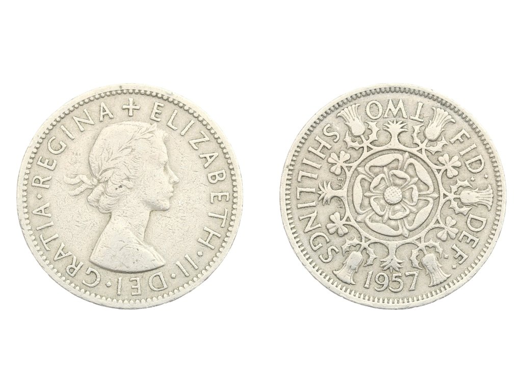 Velká Británie, mince 2 Shillings, 1957, stav 1/1...viz autentické foto