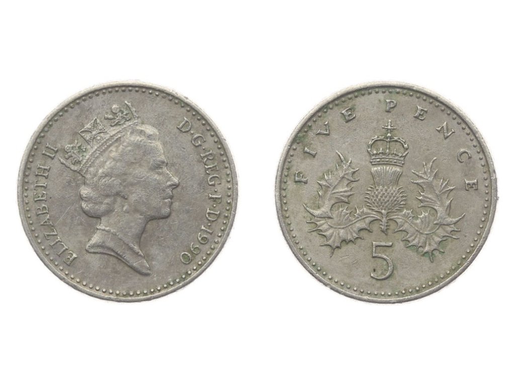 Velká Británie, mince 5 Pence, 1990, stav 1/1...viz autentické foto
