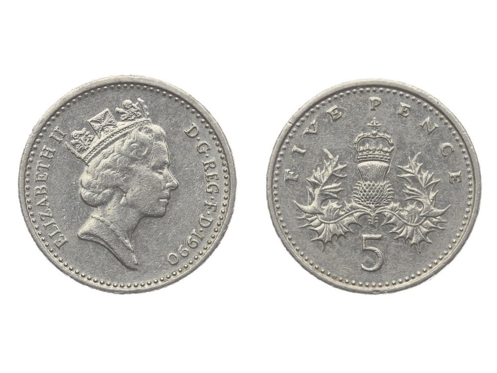 Velká Británie, mince 5 Pence, 1990, stav 1/1...viz autentické foto