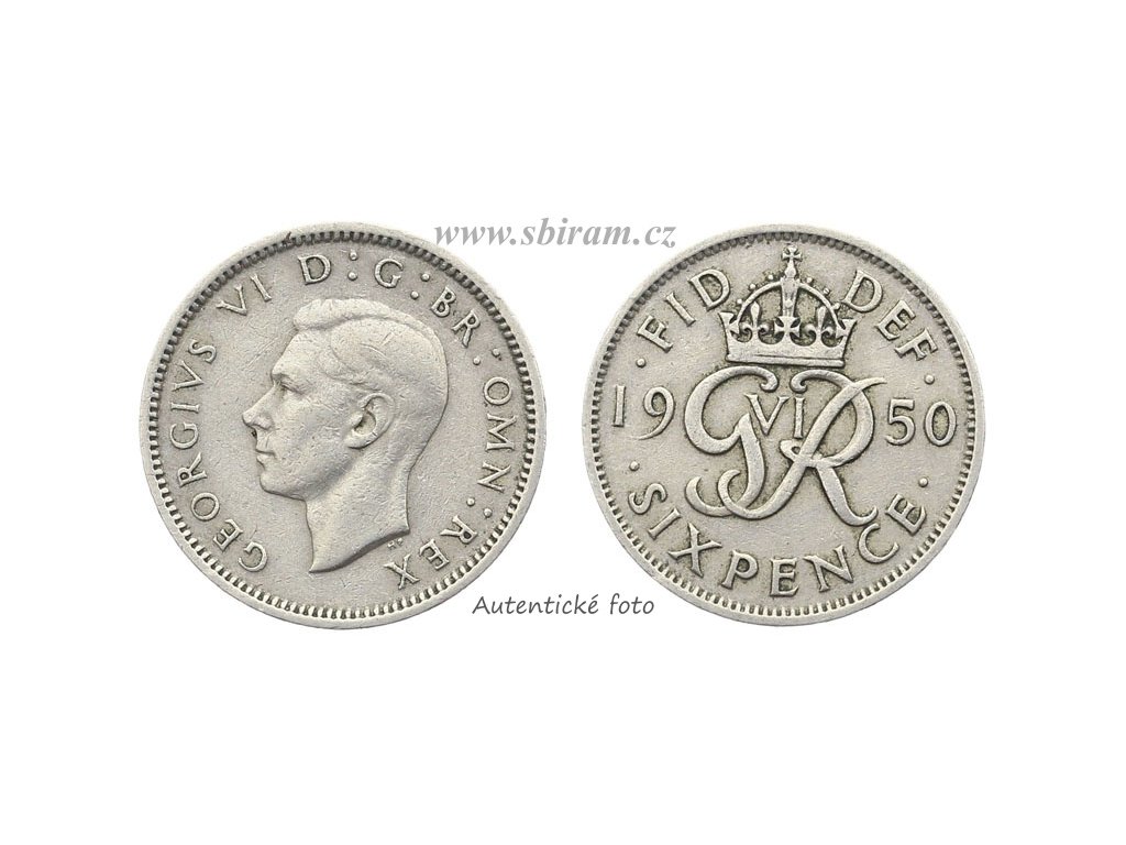 Velká Británie, mince 6 Pence, 1950...viz autentické foto
