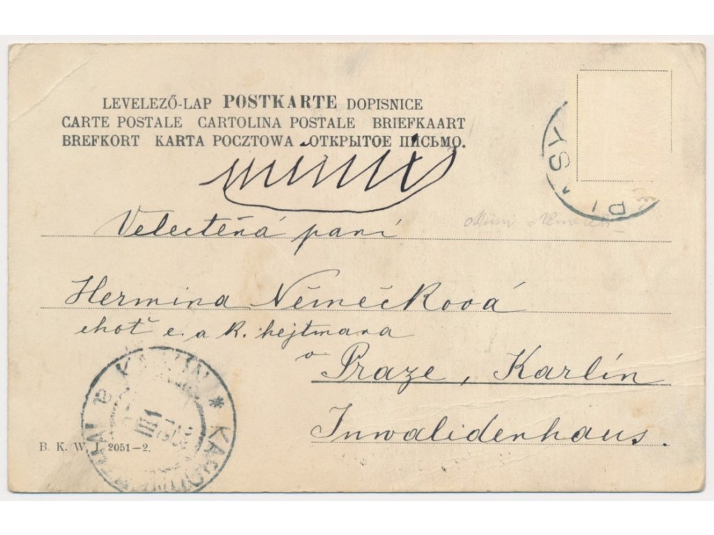 pohlednice prošlá poštou, stav odpovídá použití, uložení a stáří