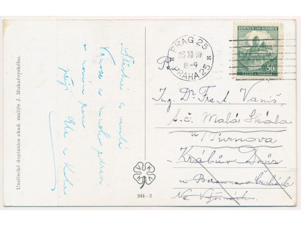 Veselé Vánoce!, Umělecká dopisnice akad. malíře J. Mukařovského, 1939