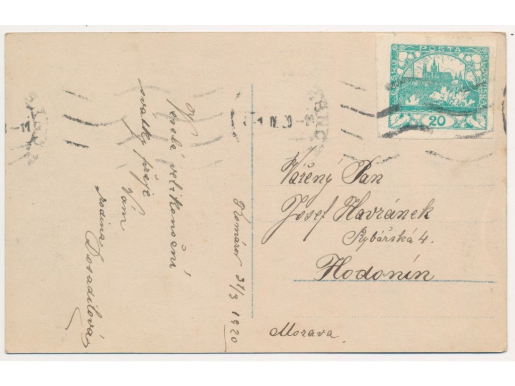 37 - Mostecko, Český Jiřetín (Georgendorf), 4 záběr, mj. Hostinec, 1927, vada - lom, ušpiněno