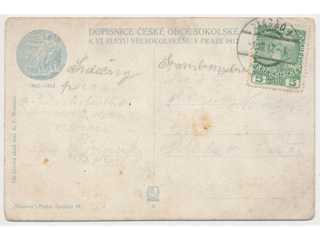 VI. slet všesokolský v Praze, Marathon, oficiální pohlednice ČOS, 1912