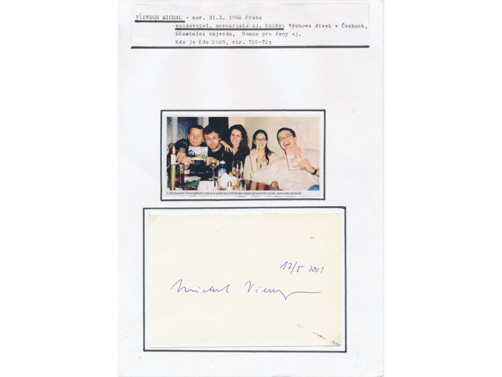 Viewegh Michal (1962), český spisovatel, sběratelský list s vlastn. podpisem