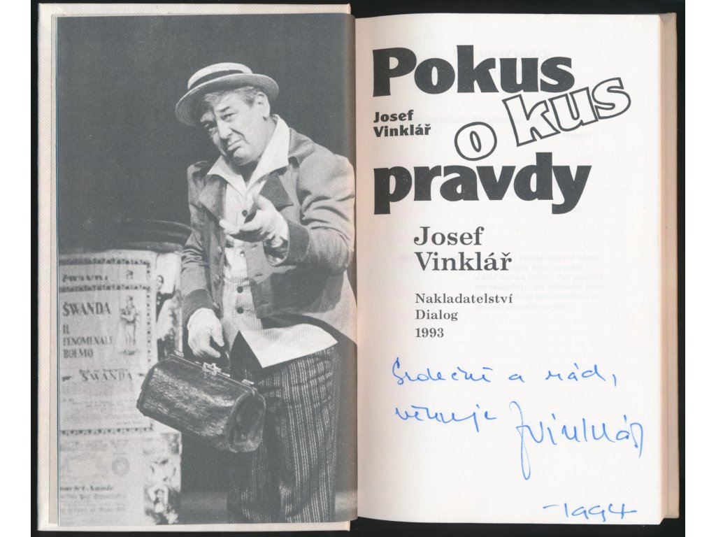 Vinklář Josef (1930-2007), knižní publikace s věnováním a podpisem, datováno 1994...viz autentické foto