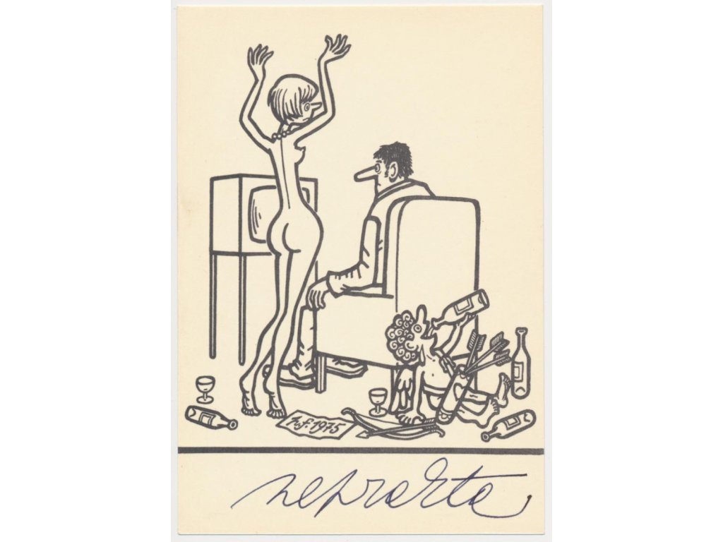 Neprakta / Winter Jiří (1924-2011), kreslíř, karikaturista a humorista, tištěné P. F. 1975 s vlastnoručním podpisem