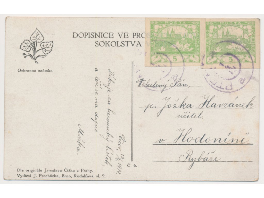 Zájezd České obce sokolské do Brna, dle orig. J. Čížka, 1914